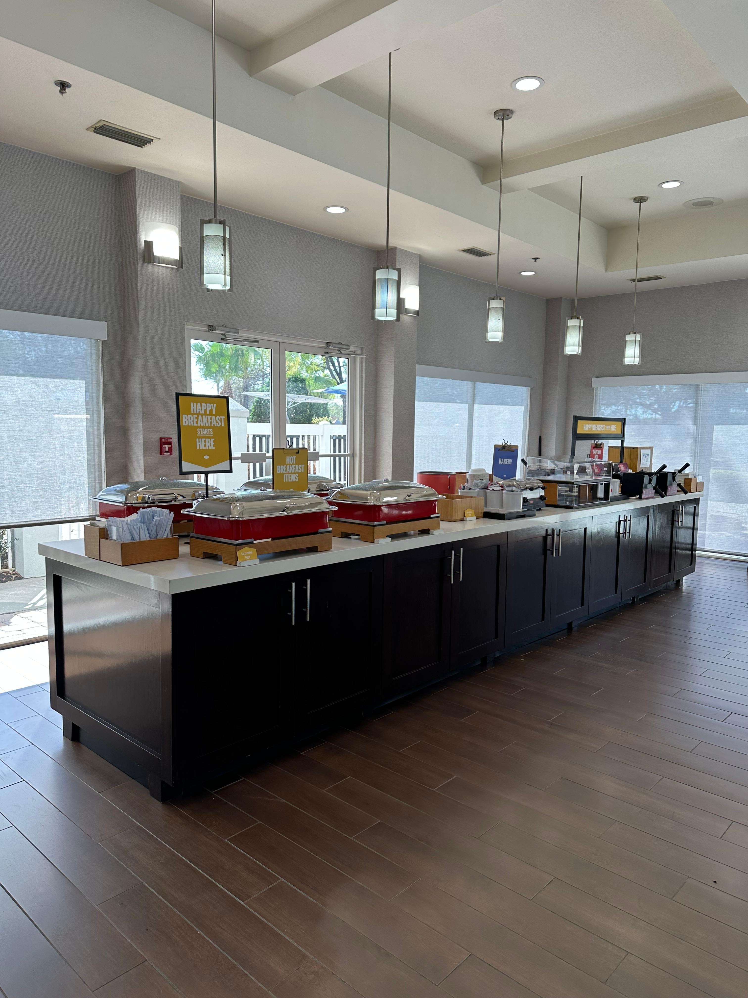 Excellent stay at this hotel! Rooms are standard but clean. Having an outdoor pool and hot tub was very nice. The breakfast was decent and the all day coffee/tea was appreciated. The location of this hotel is excellent with a very short drive to many different theme parks, water parks, shopping and restaurants!!