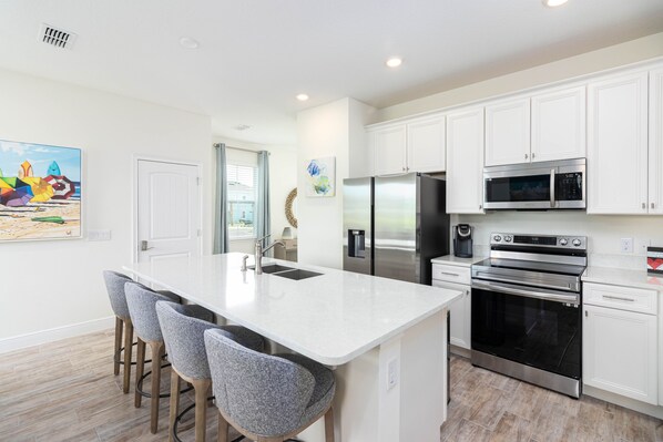 Boasting plenty of indoor/outdoor social space -- this luxurious modern Townhome accommodates up to 10 guests between four bedrooms and a sleeper sofa. Watch favorite shows together in the well-appointed living area, indulge your inner chef in the sparkling gourmet kitchen, and whip up delicious beverages with the frozen concoction maker!