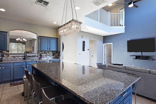 Cette maison de vacances vous donne rendez-vous à Kissimmee, plus précisément près de parcs de loisirs. Les célèbres Mystic Dunes Golf Club et Parcours de golf Reunion Resort valent le détour si un minimum d'action est à l'ordre du jour. Vous préférez partir en mission shopping ? Les non moins emblématiques Vieille ville et Disney Springs® attendent votre visite ! Vous voyagez avec des enfants ? Alors, partez faire un tour du côté des Complexe de loisirs Walt Disney World® Resort et Disney's Hollywood Studios®. Profitez des points d'eau de la région pour tester différentes activités telles que la natation ou faites le plein d'énergie en pratiquant les balades en vélo.