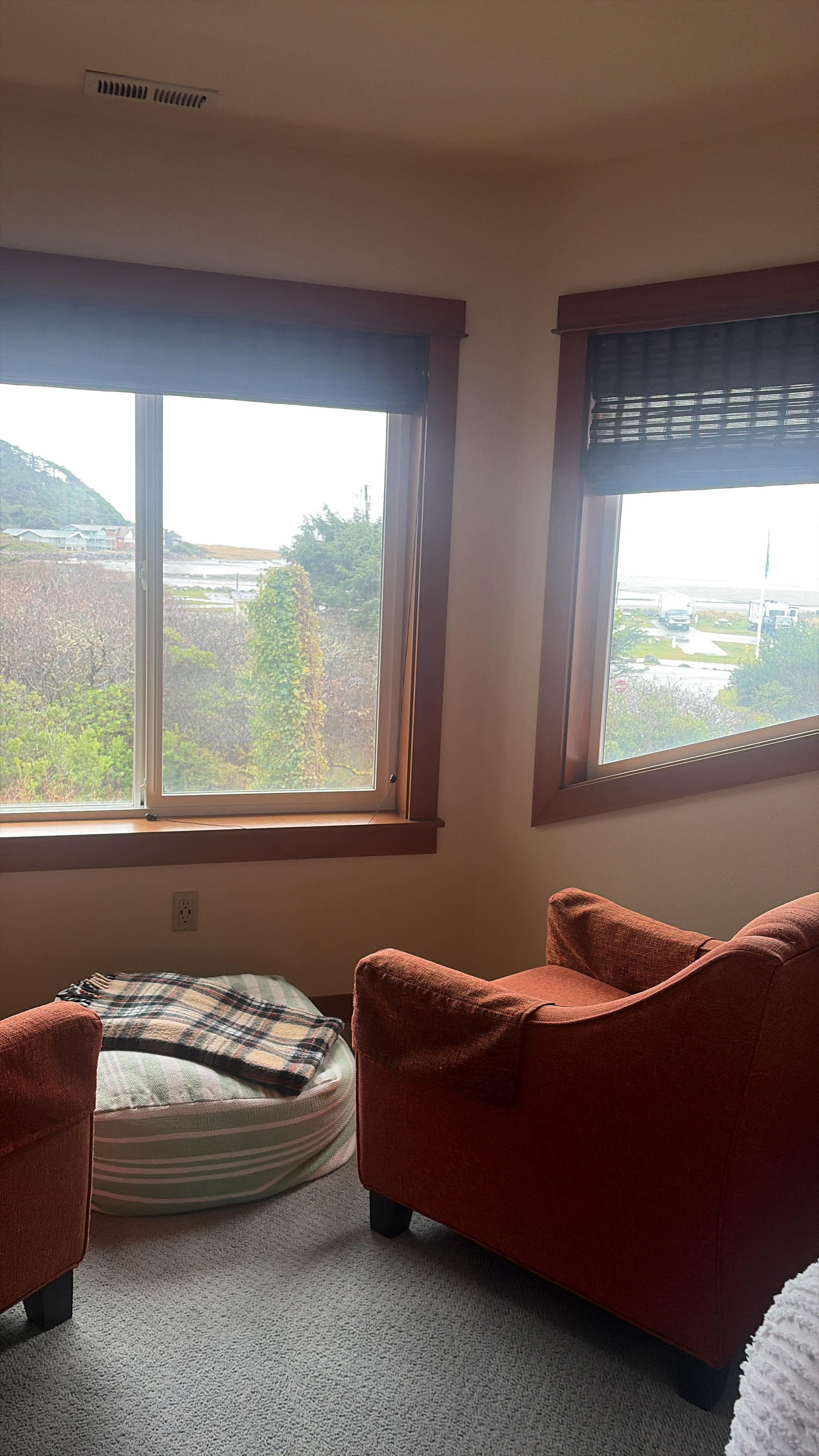 Whether you're looking to relax indoors or outside, we have everything you could need! Inside, there is a full kitchen with all amenities, including a microwave, fridge, dishwasher, coffee bar with wine fridge, and a Keurig. The dining table comfortably fits 6-8 people. There is a lovely variety of teas and coffees stocked. We also have a laundry room with a washer and dryer. Outdoors, you'll find a wrap-around deck with another dining space, fire pit, and a hot/cold outdoor shower for rinsing off after a day of sandcastle building or clam digging. And the perfect storm watch base, king tides viewable from almost every room in the house. Our discounted winter rates can’t be beat.