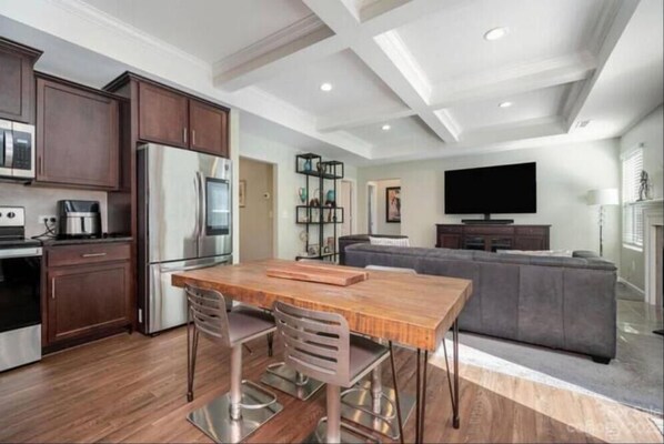 Living room has large wall mounted Smart TV- so you can log in with your accounts and high speed internet with plenty of seating and seat recline.