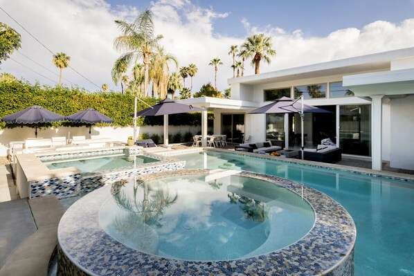 Pool and spa heating is optional for a nightly fee. Heating to 82 degrees is $75 per night. Heating to 85 degrees is an additional $30 per night. Heating to 90 degrees is an additional $75 per night. This is billed separately and must be confirmed and paid for before arrival. A two-day minimum applies. The pool and spa cannot be heated at the same time. Heat will transfer between one system or the other based on your preference.