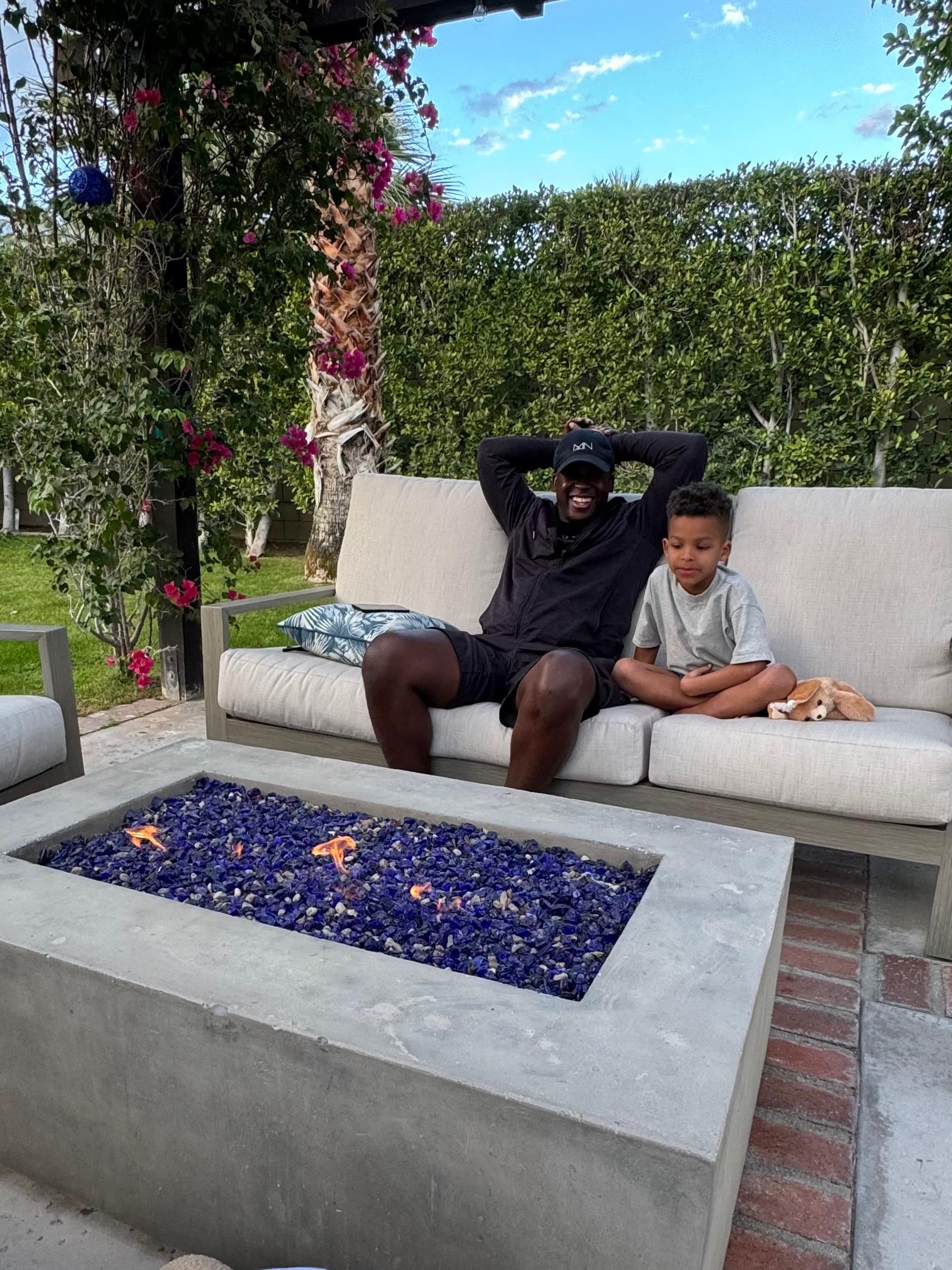 Comfortable house for three generations of guests with lots of room and well equipped kitchen. Terrific pool and spa area with numerous chaise lounges set within a beautiful backyard with a pergola over a fire pit and palm, orange and lemon trees. A great place to relax.