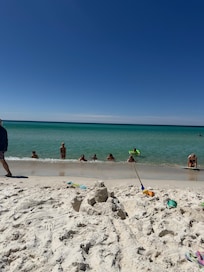 This place was just beautiful inside. I would say even a little larger than the photos display. The big patio door was also slightly tinted which helped keep the place cool. Good host communication. Also, there were a few sand toys and two lawn chairs in the huge master closet which was a life saver for the beach! The beach is full of the “paid for spots.” And there is a little room in front of all those rows that is left for people with low beach chairs which was very nice. We were at the beach most of the week with our boards body surfing so we used the pool only once. That was nice too. The only negative was the elevators. Not real big and not enough of them. If you check in or out on Saturdays be ware for very long lines to use the luggage carts. The place has a ton of them to use, but super busy! And then the elevators….. bad news! Besides that…. Our room was more than what we expected! Just beautifully decorated and lots of room.