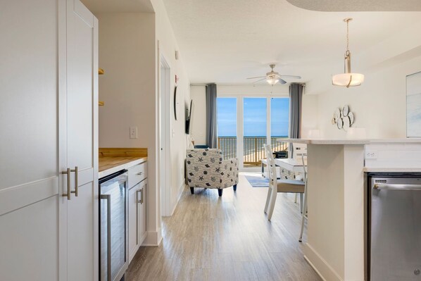 Step onto the oversized private balcony and enjoy sweeping views of the sugar‑white sands, emerald waters, and unforgettable sunsets. It’s the ideal place to unwind and take in the bird's eye view of Pier Park’s nightly glow.