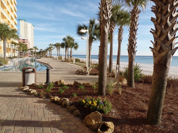We enjoyed the beach and our stay! Beautiful views! All the employees we came in contact with were so nice and polite. Always cleaning and working on things around the building. The room was spacious for the two of us. The balcony being large was very enjoyable to sit and read my book. The beach chairs left for us to use was very nice additon. They were the nicer beach chairs, helping with a little savings for our trip. The only complaint I would have is the ice maker was froze up in the refridgerator and I wish they would replace the light bulbs in the bathroom. It was a little aggravating getting ready in such a dim area. Over all great trip and we look forward to more trips in the future.