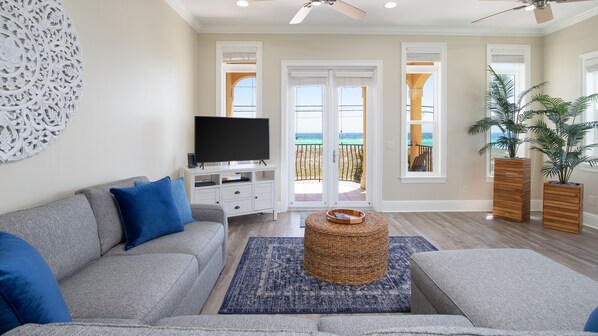 Our family has several married couples who all got a king sized bed. The downstairs suite provides a private space with queen pullout and small kitchen which worked out perfectly for our family. The large open living space was awesome- complete with a beautiful view of the gulf. We had a GREAT stay!