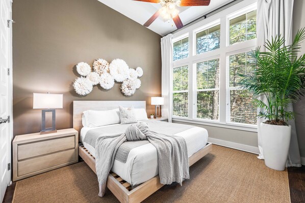 This beautifully appointed home features three bedrooms and two full bathrooms, comfortably accommodating up to six guests. Thoughtfully designed with relaxation in mind, Haven of Rest offers an inviting space to unpack, unwind, and unplug. Elegant quartz countertops adorn both the bathrooms and the fully equipped kitchen, where you'll find everything needed—whether you're brewing your morning coffee or preparing a fresh seafood feast. The spacious living room is a haven of comfort, with plush furnishings and ample seating for everyone. Gather for a family movie night on the Smart TV or step out onto the private balcony, where breathtaking views of the surrounding state park create the perfect backdrop for morning coffee or evening conversations. Each bedroom is a retreat of its own, bathed in natural light for a refreshing start to the day. The primary suite boasts an ensuite bathroom with a double vanity and a walk-in shower, adding a touch of luxury to your stay.