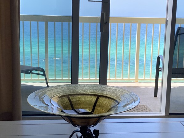 Cozy 3-bedroom condo with a wrap around balcony with an ocean view.