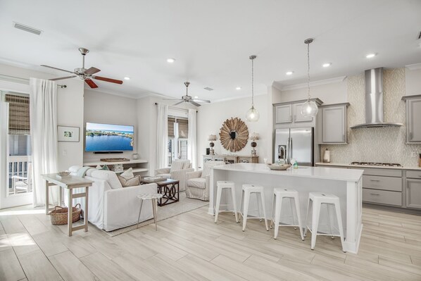 'Ocean Eyes' is a large luxury townhome with over 2,000 square feet of entertainment, including indoor and outdoor living space. You and your family will enjoy stunning upgrades and furnishings throughout, high-end name brand appliances, as well as custom plush designer coastal chic décor and accessories.