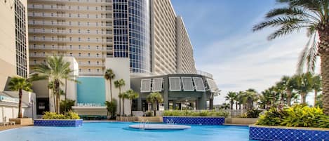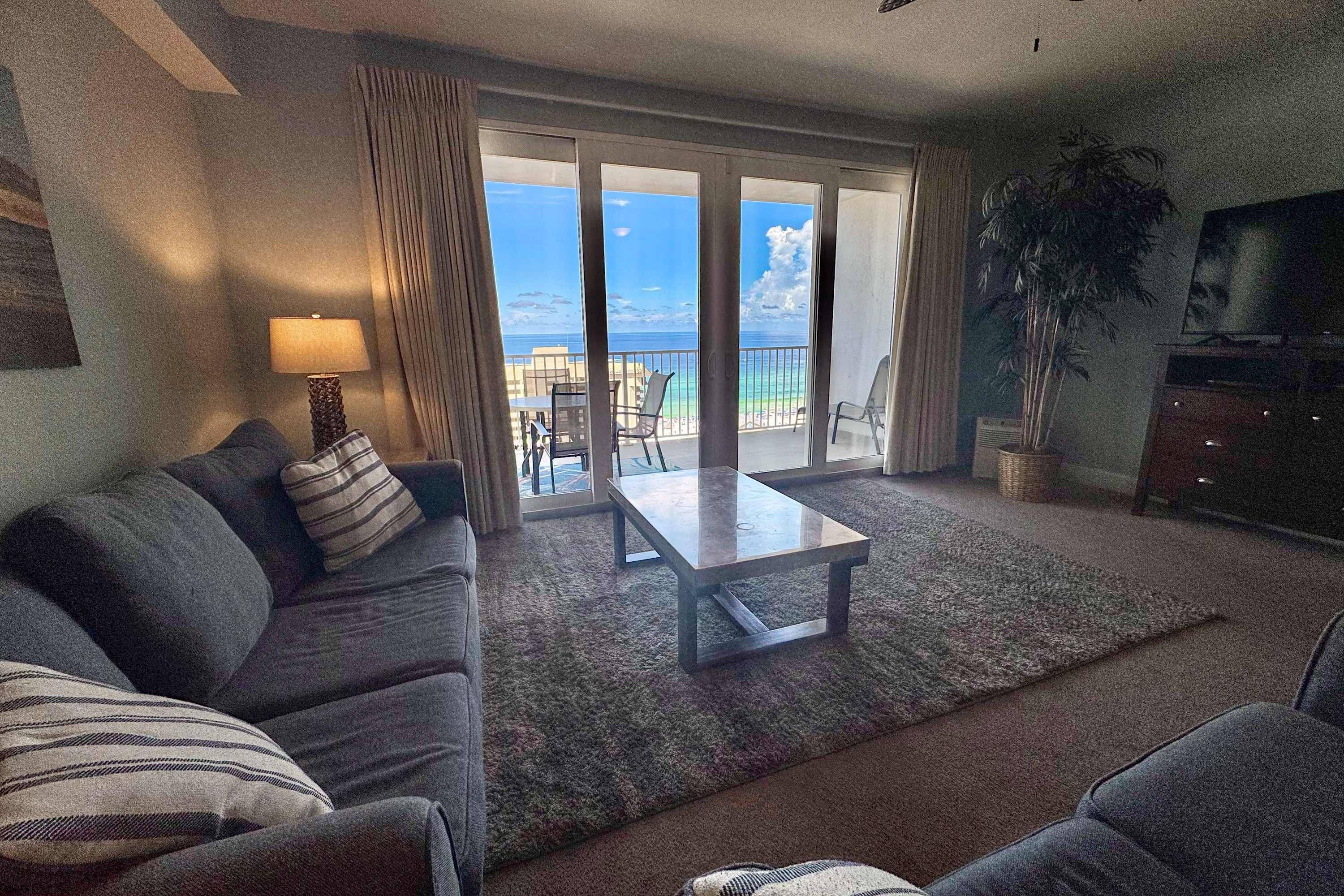 17th-floor condo with Gulf view, beach access, pools, hot tubs, gym & sauna
