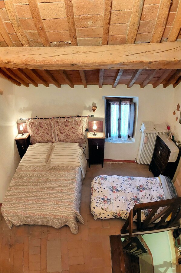 Ancienne maison de campagne de trois étages très cool. Cependant pour l'été, il y a un climatiseur portable dans la chambre mansardée.