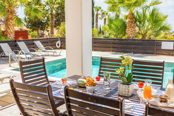 One of four neighbouring villas, Villa Olympus Artemis is a great choice for those looking to escape with family and friends. Nestled next to its sister properties Hera, Apollo and Poseidon, this gorgeous property can be booked alongside these villas for larger groups travelling together. Just a stones throw away from local bars, tavernas, and bakeries, this villa is great for those who don't want to hire a car. The nearby sandy beach of Coral Bay is less than 700m away, making for a great day out as you enjoy a spot of snorkeling or sunbathing.