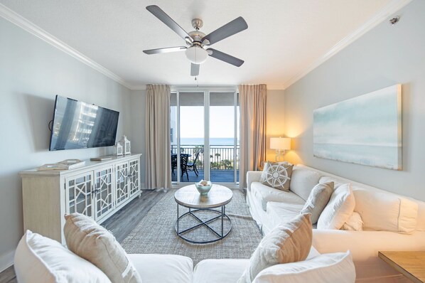 Le design intérieur de notre condo est un chalet classique et digne d'un magazine… mais pas du tout étouffant. Plongez dans des canapés moelleux, prenez une collation en fin de soirée dans la cuisine en acier inoxydable et en granit et retirez-vous dans des chambres ultra confortables. Un mobilier d'inspiration bois flotté (y compris une table à manger pour 6 personnes dans l'espace principal à aire ouverte) et des accents côtiers capturent le style de vie décontracté de la plage en un «T»!