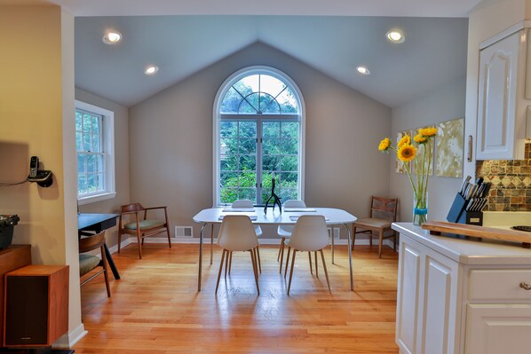 Vous cherchez une escapade romantique, une retraite en famille, à la main avec vos amis ou une retraite en solo? Laissez ma maison être votre deuxième maison Catskills et une porte de sortie! Détendez-vous dans la cour ensoleillée, baignez-vous dans la crique, skiez sur les sommets, accrochez-vous en ville, faites un barbecue ou détendez-vous au coin du feu en grillant des guimauves ou détendez-vous dans le belvédère. Venez profiter de la paix et de la beauté des Catskills lors de ma retraite en Phoenicia. Ma charmante maison de ranch moderne datant du milieu du siècle est baignée de lumière naturelle, d’un flux ouvert et du son des oiseaux et de la crique. Pas besoin de voiture, aller en ville, au bus de New York, à la crique, aux restaurants et bien plus encore!