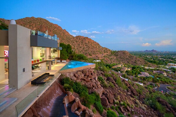 10K SQFT Estate Carved into Camelback w/ Infinity Pool, Spa, Gym & Rock-climbing