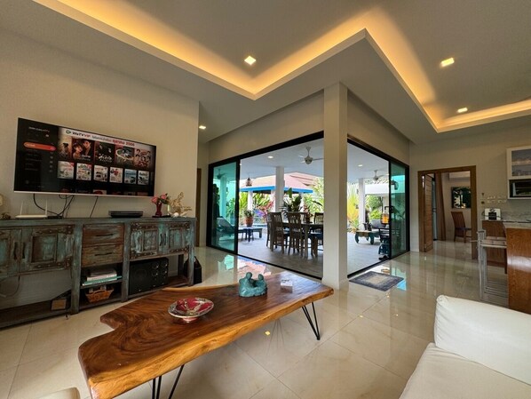 Profitez de vacances avec la luxueuse villa privée à Phuket. La villa est située à Rawai, l'un des rares endroits loin de la foule touristique environnante. Ainsi, vous obtiendrez un vrai privé et relaxant en vacances, voyagerez et comprendrez le mode de vie local à Phuket et aussi un quartier pratique car cela ne prend que quelques minutes à 24 heures de shopping, minimarts, supercenter, marchés frais, divertissements et activités, etc.