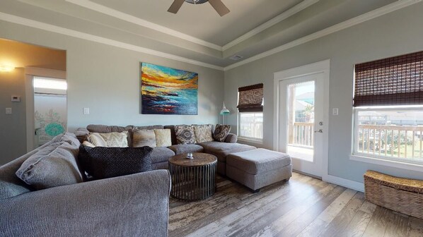 A short 5-10 min walk to beach. We rode our golf carts mostly. Easy access to beach on the next road In front of house. Not a great beach view from the porch, not much of a ocean breeze, but you can see the ocean from the front porch. The house was cozy and clean. Needs a few more kitchen items, large spoons, can opener (it was broken an old style), cutting board would have been helpful. But mostly stocked well. The bed room doors lock, an our toddler locked his self in the bedroom alone, we used a pumpkin carving knife to unlock the door. The mosquitoes were horrible, will look like you have chickenpox if you don’t use bug spray. We also locked the keys in the truck. If that happens then call the tow truck man. He unlocks trucks In Crystal beach area. Really LOVED the 4pm check out time. Gave us a little extra beach time the day we left. An the 12pm check in time is a great feature. One of the main reasons we rented this house. The beach grocery store was stocked, but be careful with buying meat, pork an chicken, they were both ruined an we had to toss out, an it’s expensive. Recommend shopping before you get there. Lots of cute gift shopping stores, latitude ???? And the kite store was out favorites. If your looking for a mixed drink, the metal box (busta-lime) in-front of the donut place is the best. They mix the liquor in where as everywhere else sells you a frozen slush and you have to add your own liquor shots. The fairy to Galveston had extremely long waiting lines. Unless you just want to kill 3 hours or more in your vehicle, don’t go to Galveston. Crystal beach area has everything you need except no fast food places. But they offer a lot of dinning restaurants