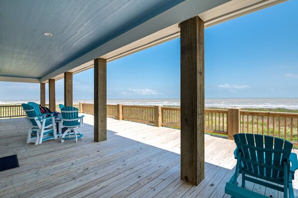 Amazing beachfront home, over 3400 square feet, with 5 bedrooms, 5 bathrooms, cargo lift and sleeping for 18. Great entertaining space, easy beach access and family friendly beach right outside the door.