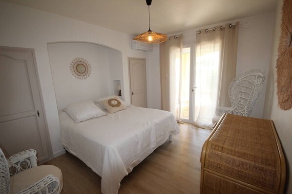 -Chambre 2 climatisée avec lit 160 cm + 1 lit 90 cm (total 5 couchages).