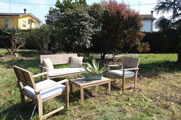 patio: espace extérieur pour les repas en plein air, table à manger (personnes: 6), internet WIFI. jardin: internet WIFI, barbecue. parking: À l'intérieur de la propriété, deux places de parking.