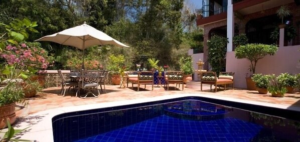 Secluded area. Very quiet.Gaby and Luz were great, kept the property clean and prepared great breakfasts daily! They made our stay very enjoyable.The pool is quite cold so heating or solar blanket is preferred in colder months. We could not get any room to cool down enough for a good nights sleep. We closed all the windows and arranged at least 7 stand up fans near the bed. Lots of steps! Main bedroom is on top floor.Unique original Spanish style. Older house, but didn’t bother us. Uber drivers have a hard time finding the house as it’s very remote and up a very steep cobble stone hill. Very far from main attractions. Non navigable streets, must taxi or uber each time. Most restaurants are at least 30 minutes away. Located next to zoo, didn’t bother us, but parrots in the morning and early evening are loud. Beautiful to see though! Showers had great water pressure and heating but water got everywhere. Bring your own shower amenities! Would be a great spot for large group, with plenty of privacy.