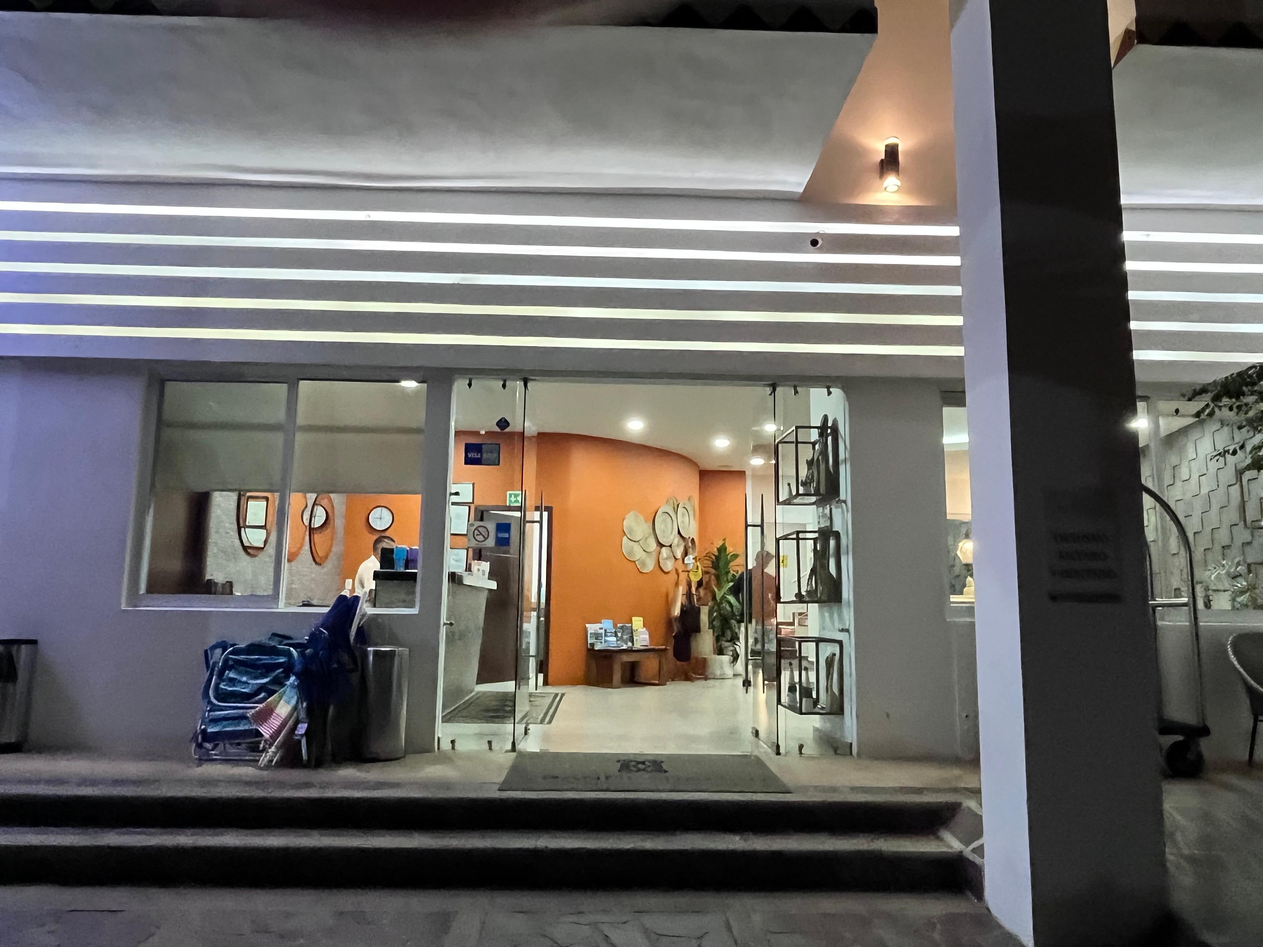 On the beach, beautiful view. Misael at the front desk was so helpful in booking us extra days. Very close to shopping. Pool was clean and well managed and just upstairs on the rooftop! Breakfast was complimentary and delicious. I would highly recommend staying here.