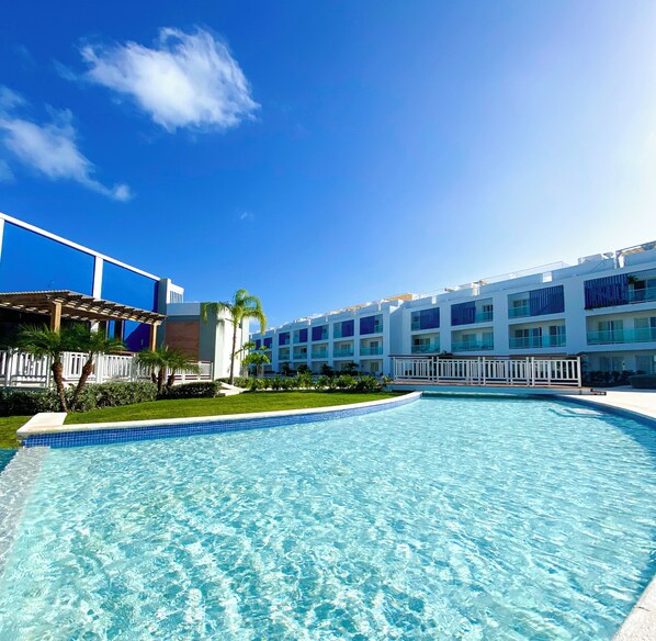 Peaceful Pool Front Apartment with Balcony, Wi-Fi, AC & Golf View in Punta Cana