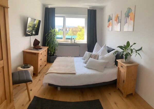 Bienvenue dans notre appartement de vacances meublé avec amour - la retraite parfaite pour des journées de détente au bord du lac. L'appartement offre une chambre confortable, une salle de bain spacieuse avec lumière naturelle et un salon lumineux avec un canapé-lit confortable - idéal pour les couples ou les petites familles. La grande cuisine entièrement équipée vous invite à cuisiner ensemble. Un petit balcon offre de l'espace pour des moments de détente en plein air. Profitez du calme, du confort et d'une atmosphère chaleureuse et familiale. Des places de parking sont disponibles dans la propriété. Les bicyclettes peuvent être entreposées en toute sécurité dans le garage. Check-in à partir de 16 heures, en personne ou par coffre-fort à clés. Veuillez nous communiquer votre heure d'arrivée un jour à l'avance.