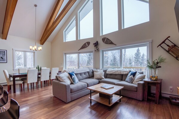 FAQs: This property has a ski rack, EV charger, two adult snowshoes, and ski in/out snow cover. This property offers ski-in and ski-out access - you have to clip out to ski out. Shuttle service available to the ski lodge. ​​​​​​​