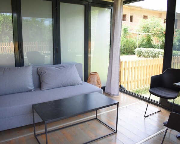 Zen Studio 2 min from the beach with a spacious veranda, free WiFi, and A/C.