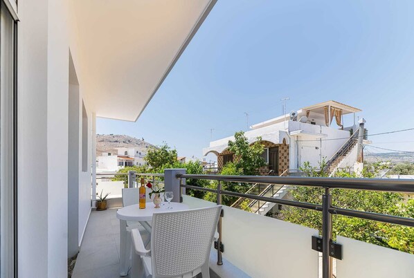 One of the highlights of Antonis Studio is the two enchanting outdoor patios. Start your morning with a cup of coffee on the patio while soaking in the serene village views. In the evening, the second patio offers a perfect spot to unwind with a glass of local wine, taking in the breathtaking sights of the historic Castle of Archangelos.