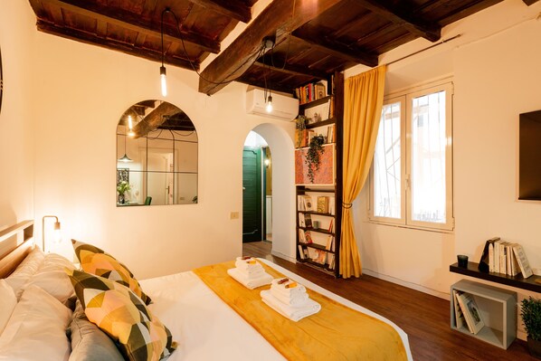 Dans le quartier de Centre-ville de Rome, cet immeuble se trouve à moins de 10 minutes à pied de Campo de' Fiori, Place Navone et Panthéon. Via del Corso et Château Saint-Ange se trouvent également à moins de 15 minutes de là. Station de tram Arenula-Cairoli n'est qu'à 4 minutes à pied et Station de tramway Arenula-Min. G. Giustizia est à 6 minutes.
