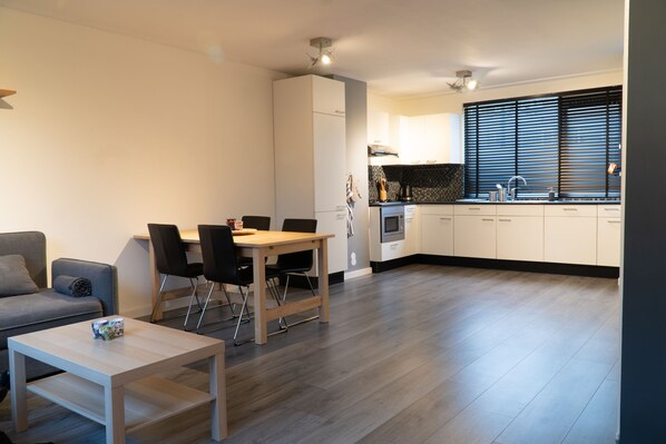 The apartment has 4 bedrooms, 2 toilets and a large living room on the ground floor. Kitchen utensils, washing machine and other household appliances are available. The garden with garden furniture is ideal for relaxation. The apartment also has a large flat-screen TV and free WiFi.