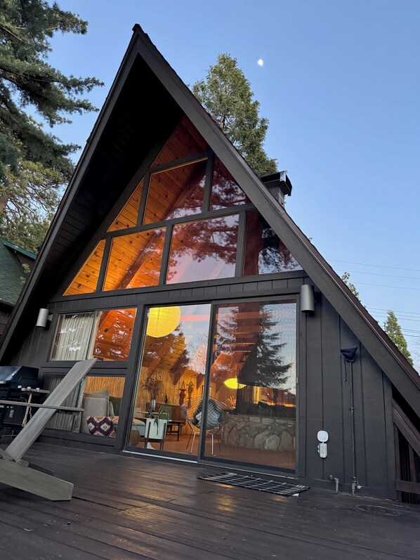 Step back in time and enjoy all the vintage touches of this Mid-Century Modern A-frame time capsule in Running Springs nestled perfectly between Lake Arrowhead and Big Bear. Enjoy hiking, the nearby lakes in the summer and skiing/snowboarding in the winter. Relax on the large deck high up in the trees, or curl up on the couch with a mug of hot cocoa in front of the Carousel fireplace. Grill up dinner out on the deck, listen to records, play board games and enjoy spending time in this sweet retro vibe.