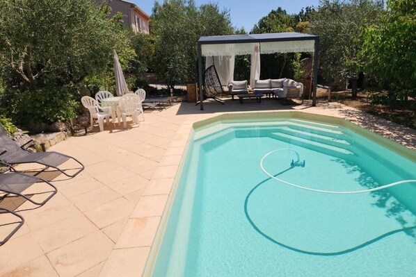 Dotée de 4 chambres confortables, la villa comprend également une cuisine entièrement équipée (réfrigérateur, lave-vaisselle), un salon avec télévision à écran plat, un coin repas convivial, ainsi que deux salles de bains modernes avec douche. Le linge de lit et les serviettes sont fournis. Une piscine privée et un parking privé gratuit complètent les prestations.