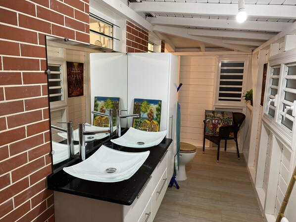 Face à la mer, cette villa se situe à 4,6 km de Plage de l'Anse des Rochers et à moins de 10 km de Plage du Manganao et Plage des Raisins Clairs. Plage de Gros Sable et Centre commercial Pradel Saint-François sont également à 10 km de distance.