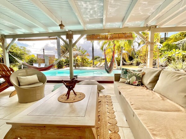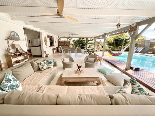 Nous avons séjourné une semaine à 8 adultes et un bébé. La villa possède un superbe jardin arboré et une très belle décoration (souvent faite maison et typique). La villa était moyennement propre. Il y a trop de bibelots et autres pour que ce soit réellement propre ... Les dessus des pots en cuisine étaient très gras, les étagères sales, les transats tachés. Nous avions pris le forfait ménage. Le jour de notre arrivée le propriétaire nous donne un montant plus élevé que celui affiché dans la villa. Autre erreur dans l’annonce : un chèque de caution est demandé à notre arrivée. Nous n’avions que des cartes bancaires et pas de chéquier puisque la plupart des autres commerces n’acceptent pas les chèques hors place.