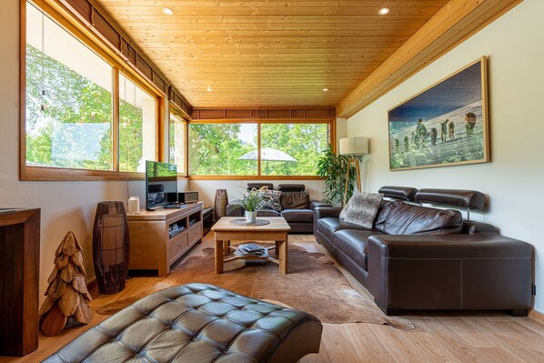 - Autre particularité de l'hebergement : vous ne disposez pas de la totalité du chalet mais uniquement du rez de jardin. Le jacuzzi, la salle de fitness et le sauna sont exclusivement pour cet appartement