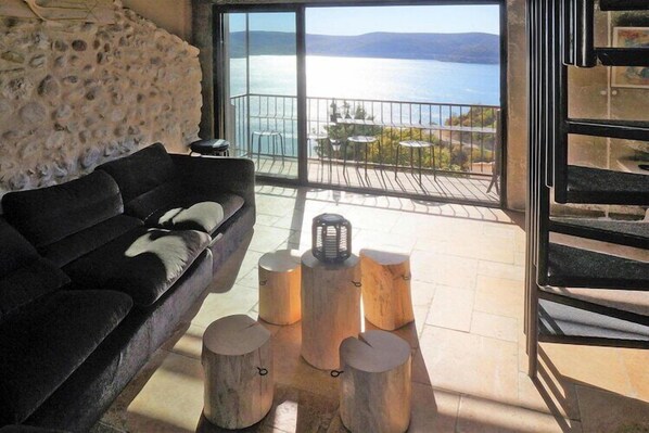 La vue imprenable sur le lac de Sainte-Croix rendra vos vacances inoubliables ! Cette maison de village sur trois étages est décorée avec beaucoup de goût, dans un style industriel moderne. La pièce à vivre principale, au premier étage, se compose d'un coin salon confortable, d'une salle à manger et d'un coin cuisine, l'ensemble sous de hauts plafonds avec poutres apparentes. Un coin couchage est séparé du salon par un rideau. Un escalier en fer raide mène du séjour à un espace télévision cosy, pas conseille pour des petits enfants. Les deux autres chambres à coucher et les deux salles de bains se trouvent au rez-de-chaussée. Le balcon surplombe le lac et offre une belle vue panoramique. Profitez de l'ambiance méditerranéenne avec une bonne bouteille de vin devant ce cadre d'une beauté exceptionnelle. Découvrez la région à pied sur les nombreux sentiers de randonnée, ou sur l'eau en canoë. Prévoyez une excursion dans les magnifiques Gorges du Verdon, uniques en Europe. Diverses activités nautiques, de l'escalade, du deltaplane, ainsi qu'une visite au Musée de la Préhistoire à Quinson et au Musée d'Archéologie à Riez sont au programme !
