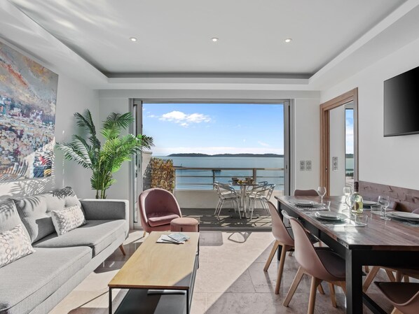 APPARTEMENT AVEC VUE MER À SAINTE-MAXIME 100% AUTHENTIQUE 🛋️ SALON SPACIEUX: vue mer.