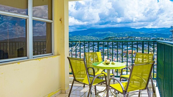 This rating should be a 5 star judging for the attentiveness of your staff and the apartment conditions, however the surrounding disrepair due to hurricane Maria not yet corrected gives it a 4. From the apartment your view includes the beach, El Yunque mountain range, and the main roadway entrance. We took nice pictures from the balcony to share them with friends and family. The pool non-operational was a non issue to us, after all the beach is just out the gate. The surrounding areas within the complex still show hurricane damage, however the surroundings are well manicured, grass cut etc. The apartment is very well kept, everything works and even have beach chairs, volleyball ball, beach toys for the kids, towels etc..., the kitchen well stocked just get what you need from the supermarket across the street. The welcome binder has excellent tips for entertainment and dinning suggestions. The instructions were clear, and to the point. Security personnel where very attentive, alert, respectful, helpful, specially Jose Colon, whom assisted us during our late arrival Friday night. We can say we stayed at our home away from home. Thanks Judith and Violetta for your assistance, we will call again.