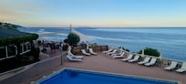 Hôtel avec piscine extérieure ouverte en saison au bord d’une plage de sable noir
