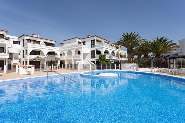 Très lumineux, confortable, propre et équipé de tout ce dont vous avez besoin pour un séjour idéal. Il dispose d'une terrasse confortable donnant sur le jardin commun et avec un accès direct aux espaces communs. Il est situé dans une urbanisation merveilleuse et calme qui dispose d'une magnifique piscine et d'un bar de piscine pour plus de confort.