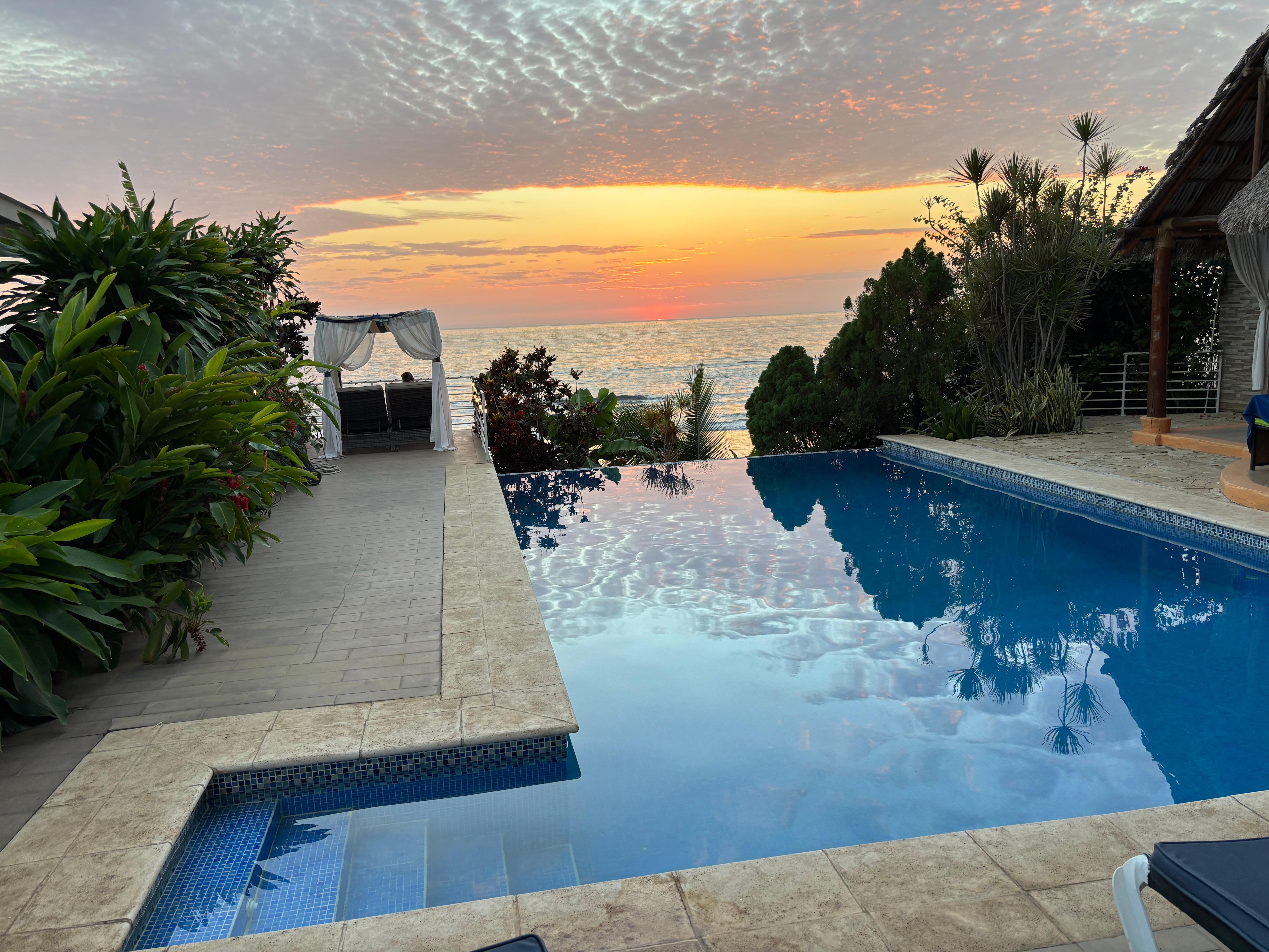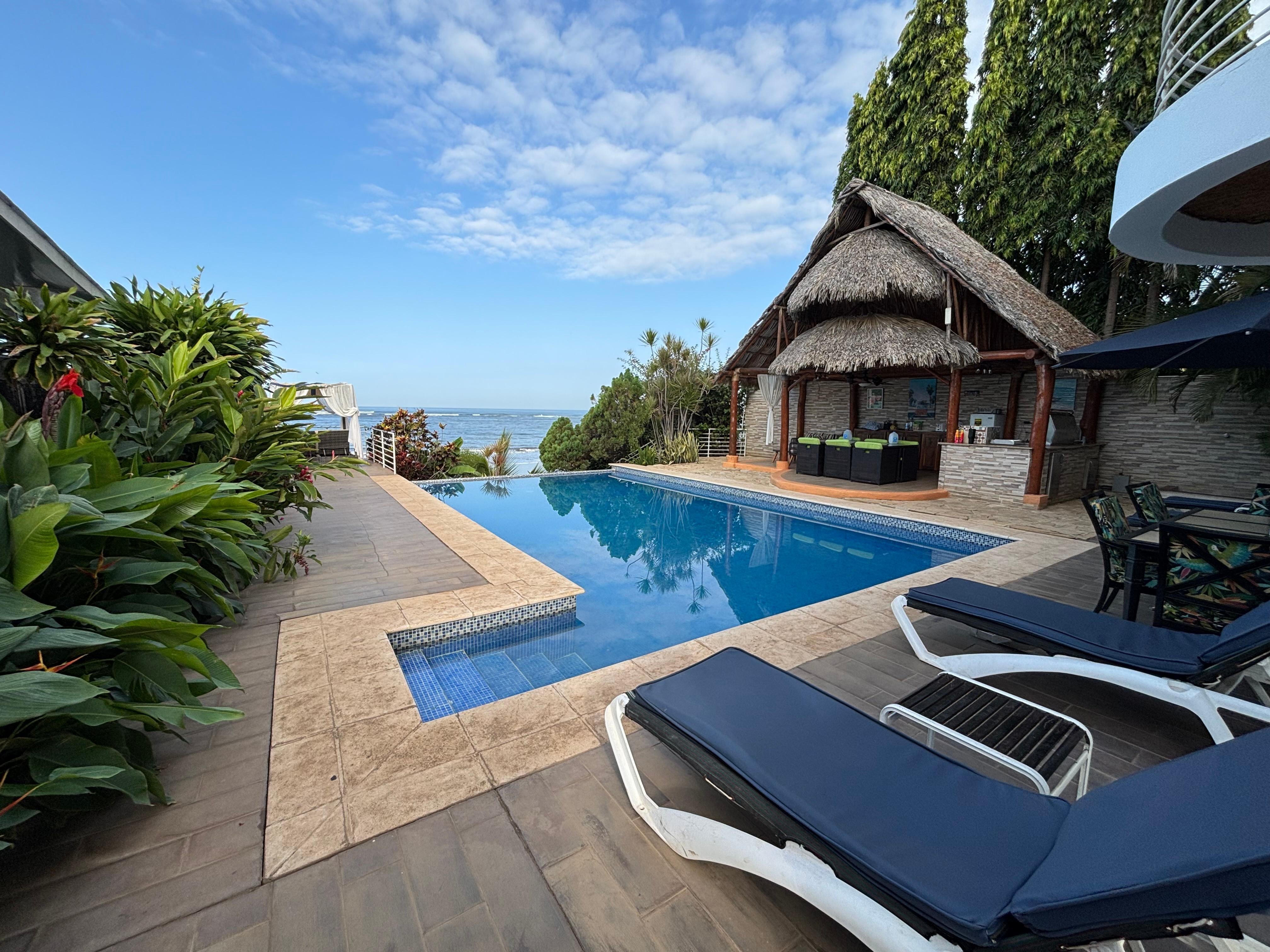 Profitez d'un séjour incroyable dans cette unique d'un séjour type de marque nouvelle villa. Les meubles sont de première classe et vous pourrez profiter de votre propre cuisine et salle de douche. La climatisation et des ventilateurs de plafond. L'emplacement est très privé et les vues de l'océan sont incroyables. La propriété est un bâtiment moderne à 3 niveaux et l'hébergement offert est au rez-de-chaussée avec accès privé et à côté d'une belle piscine à débordement. Le logement est adapté pour 1, 2 et jusqu'à 8 personnes. Cette propriété est pour les voyageurs qui désirent tranquillité et pourtant seulement 8 min à pied de la ville. Marcher le long de la belle plage de sable fin, soit le matin ou au coucher du soleil est indescriptible. Vous avez un accès direct à la plage de la villa. La piscine est grande avec débordement et à côté d'un fabuleux tiki / rancho avec un beau coin, cuisine extérieure unique avec 42 "en plein air grill, brûleurs à gaz, réfrigérateur avec tiroirs et lavabo. Profitez d'une baignade avec un verre à côté de la piscine. L'établissement propose un petit déjeuner complet - choix de continental ou local Nicaragua - le petit déjeuner est facultatif et non inclus dans le prix. Dolores, la cuisinière / la gouvernante, peut préparer tous les repas pour un coût supplémentaire de 20 $ par jour. Ceci est un service FACULTATIF. Vous fournissez les courses et elle fera la cuisine pour vous. Voulez-vous profiter d'un massage tout en vous détendre aux sons des vagues? Alors cela peut être arrangé. Regarder une belle sur
