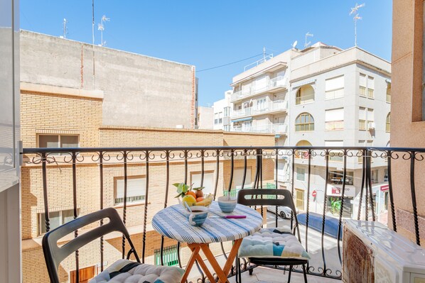 Profitez de votre balcon privé pour vous détendre et savourer l'ambiance côtière. L'appartement est idéalement situé près de la plage, ce qui vous permet de rejoindre facilement le front de mer et les attractions locales.