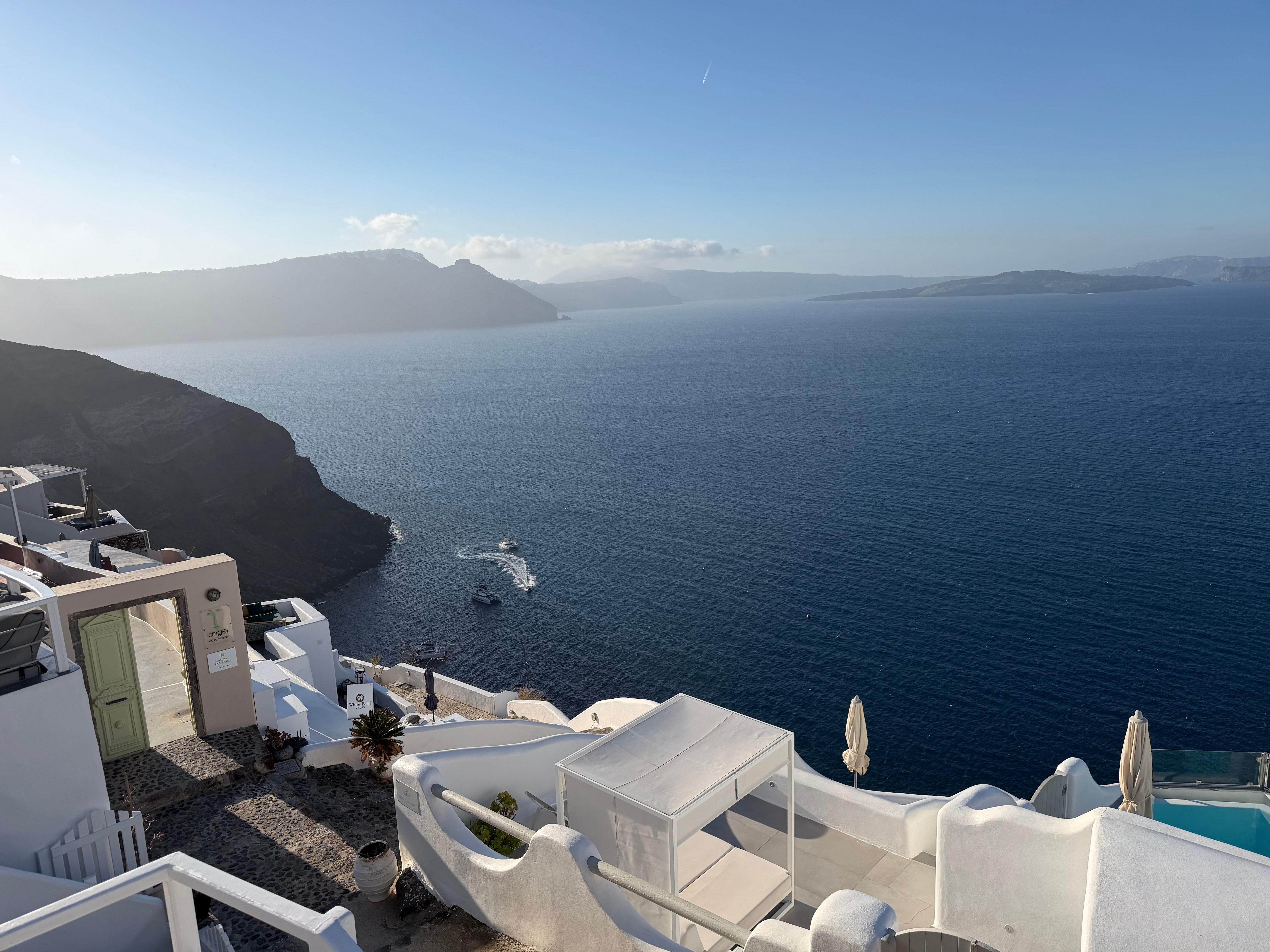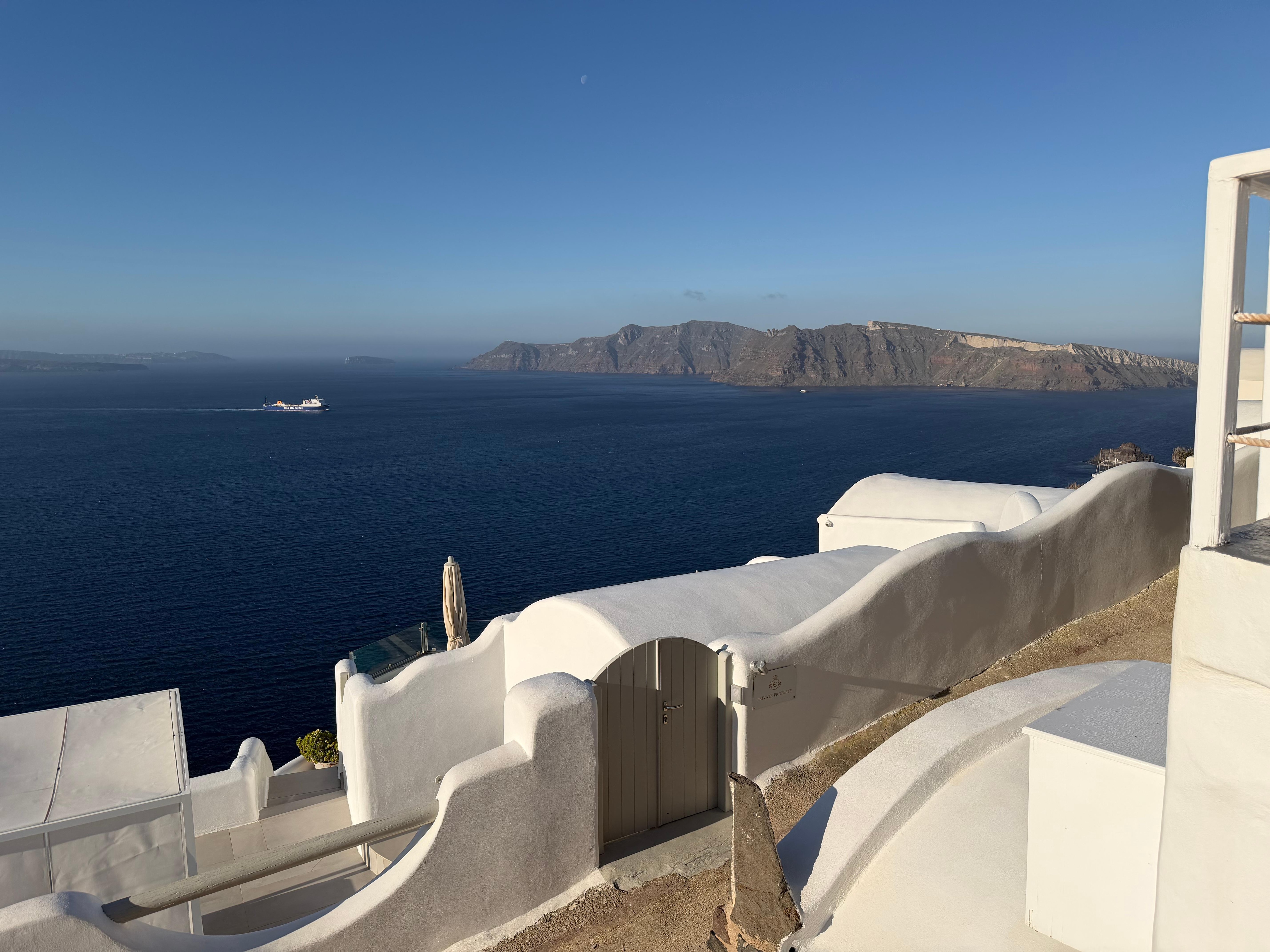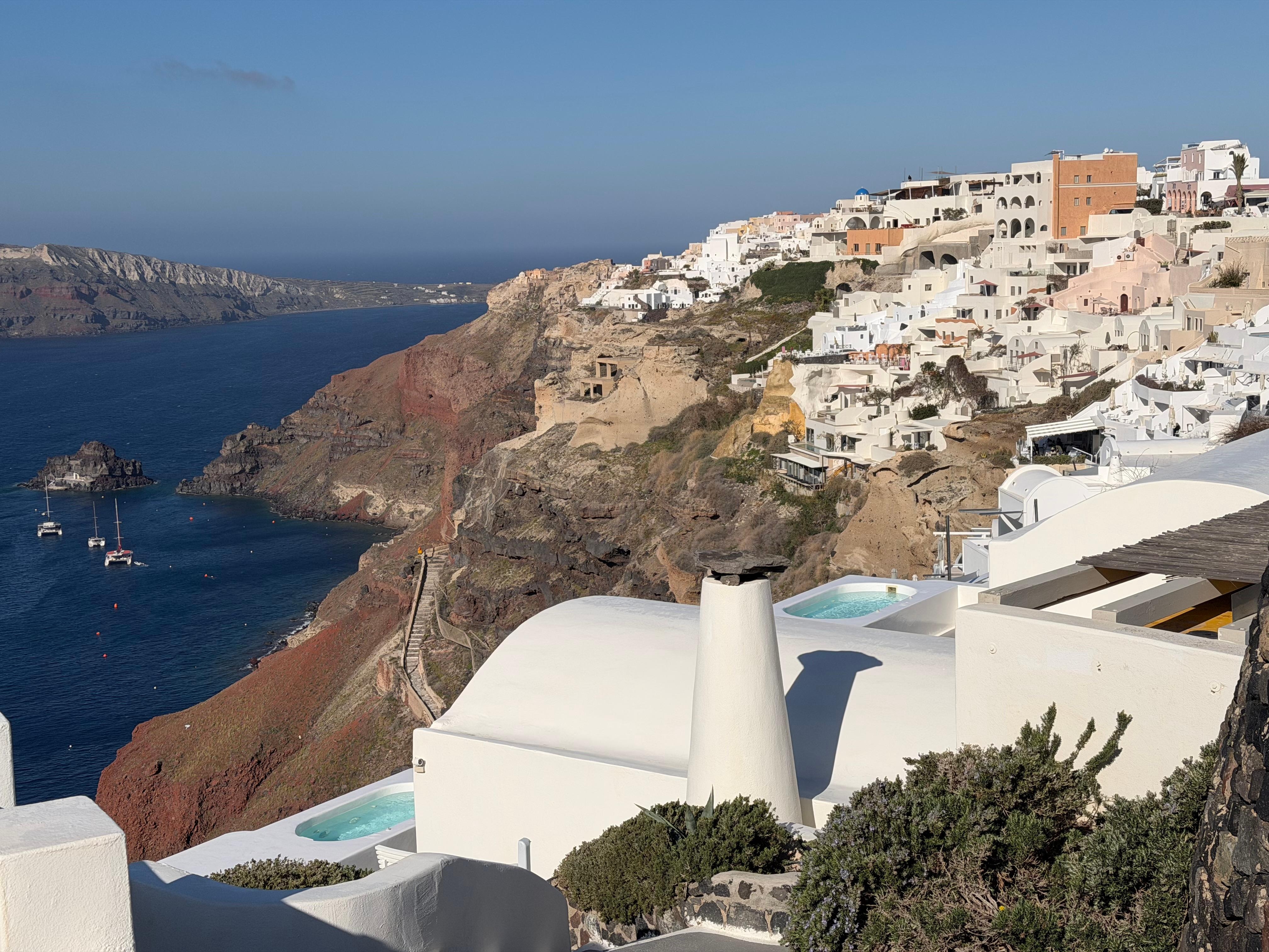 The property has a great view of Santorini waters. I booked the 2 floor suite with private pool for just the wife and me—it was amazing. The only issue, which is fixable is changing the beds because they are hard and changing the toilet lid which was not aligned with seat bowl. Also, it would be best to give customer some snacks and drinks for each day they stay. Overall, great place to vacation.