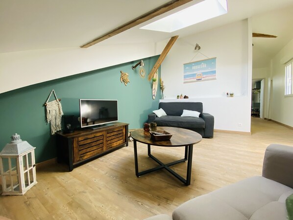 Salon cosy avec 2 canapés dont 1 convertible (2 personnes)