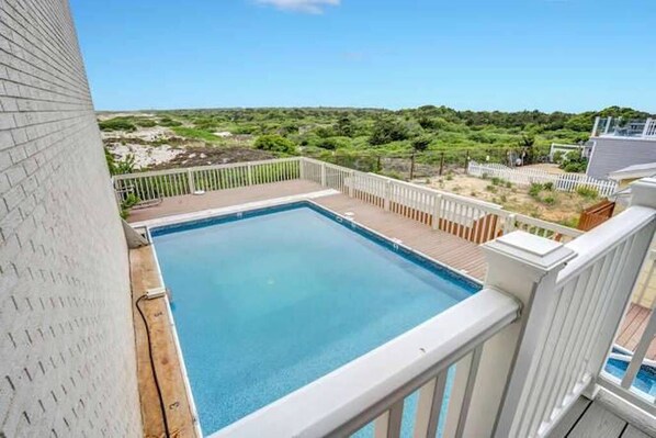 We have our own private beach in front of the condo (only shared with the owners of our building - no lifeguard). There is an outdoor shower right by our beach entrance to rinse off after the beach, hose for feet as well. We also have a 4 foot, salt water pool, surrounded by decking with ladder entry, open the 90 days of summer, no lifeguard. The pool is maintained by pool service to always be fresh and sparkling for a dip. You also have access to the public beach entrance right next door (in front of Chef Mikes) if you prefer a lifeguarded beach (6 passes included in stay). Must return all six upon departure or there will be a $500 charge for each lost pass.