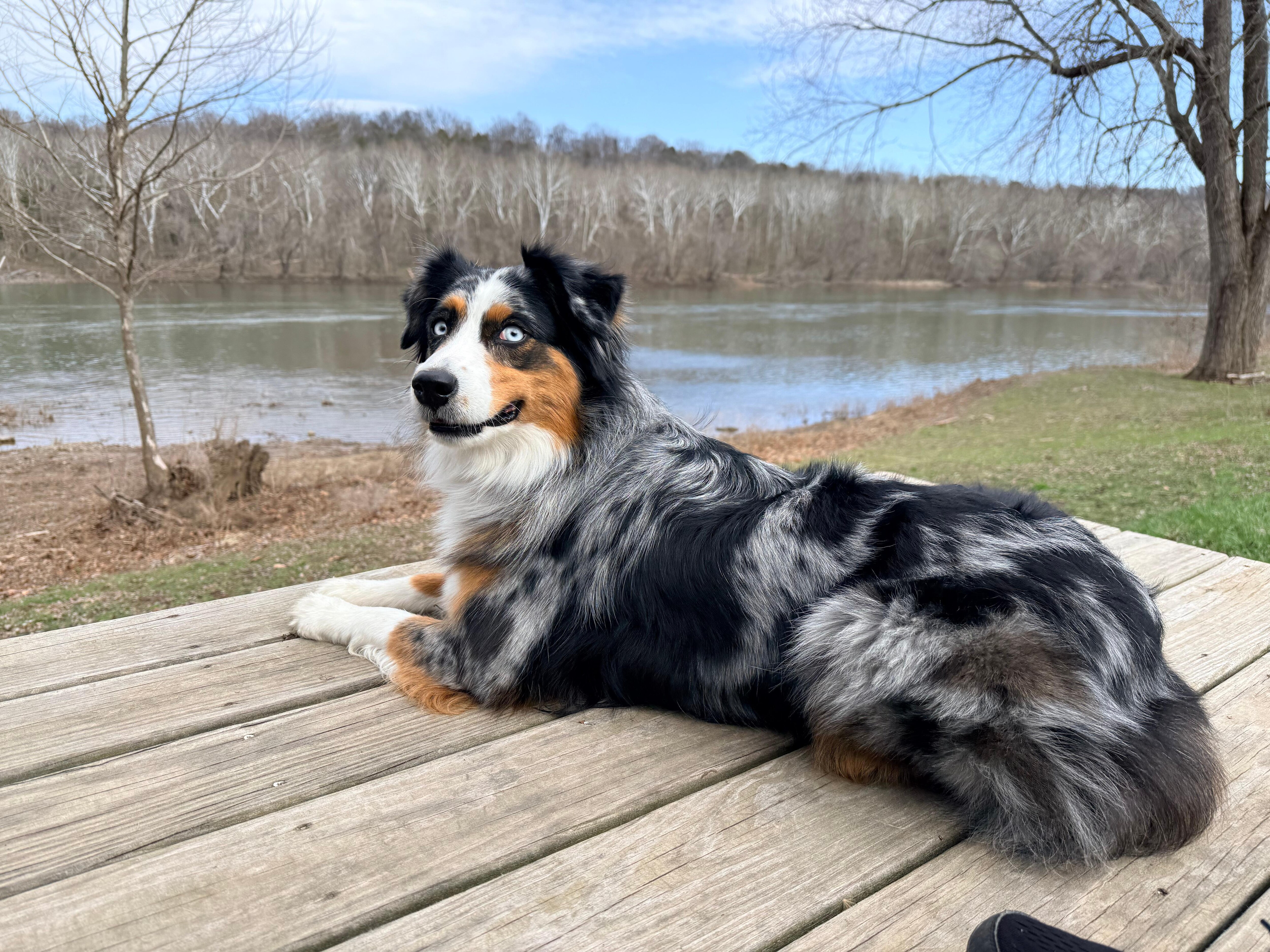 Dogs loving the river